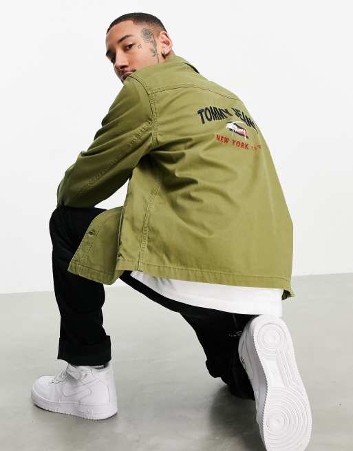 Tommy Jeans - Surchemise style uniforme avec imprimé au dos - Vert olive
