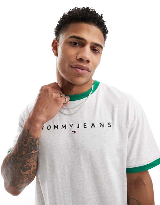Tommy Jeans - T-shirt à logo linéaire et bords contrastants - Blanc