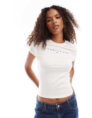 Tommy Jeans - T-shirt ajusté avec logo linéaire - Blanc cassé