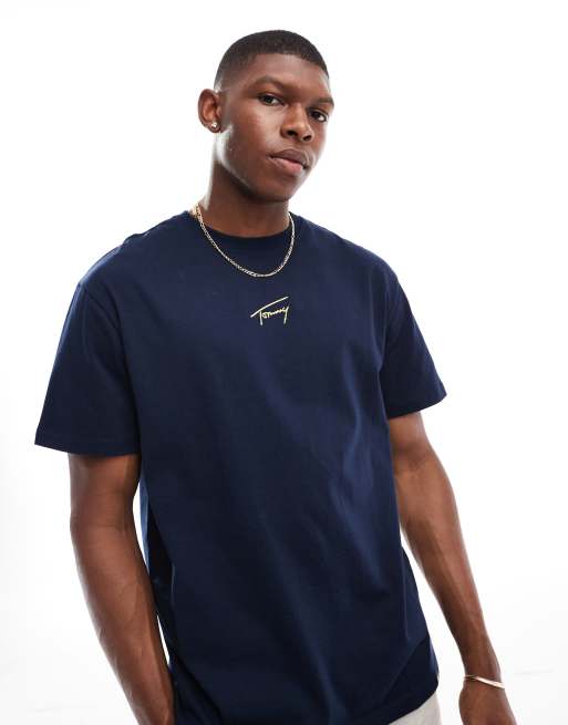 Tommy Jeans - T-shirt avec logo doré au centre - Bleu marine