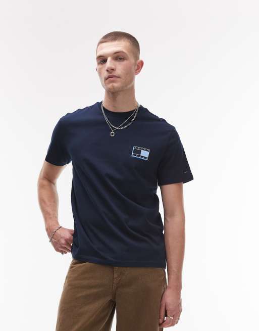 Tommy Jeans - T-shirt avec logo drapeau fluo - Bleu marine
