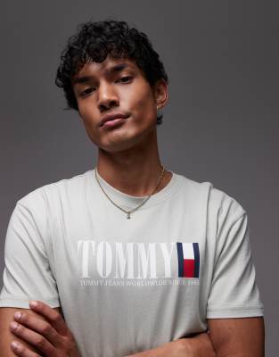 Tommy Jeans - T-shirt avec logo drapeau linéaire - Vert sauge