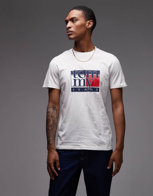 Tommy Jeans - T-shirt avec logo drapeau style années 90 - Blanc