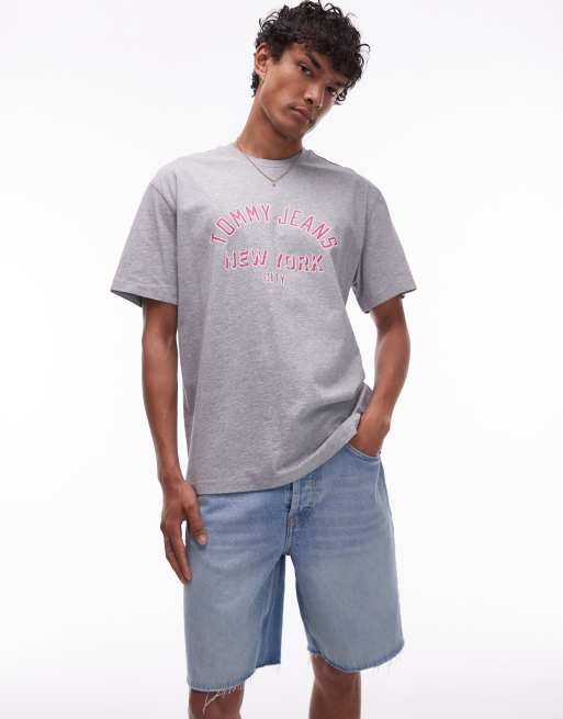 Tommy Jeans - T-shirt avec logo style universitaire au centre - Gris et rose