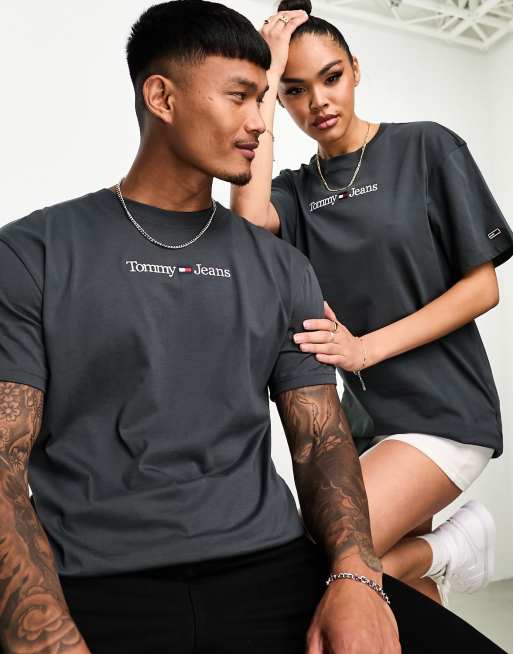 Tommy Jeans - T-shirt classique unisexe à logo linéaire - Anthracite