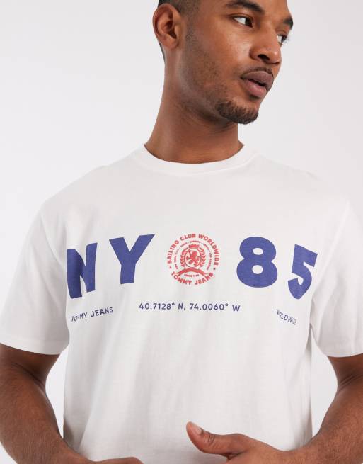 Tommy Jeans - T-shirt décontracté à logo 1985 - Blanc