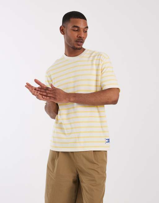 Tommy Jeans - T-shirt décontracté à logo drapeau et rayures - Jaune
