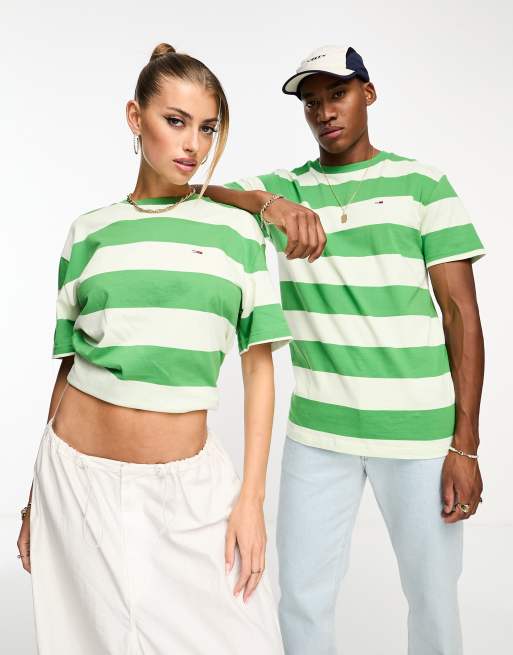 Tommy Jeans - T-shirt unisexe à rayures color block - Vert
