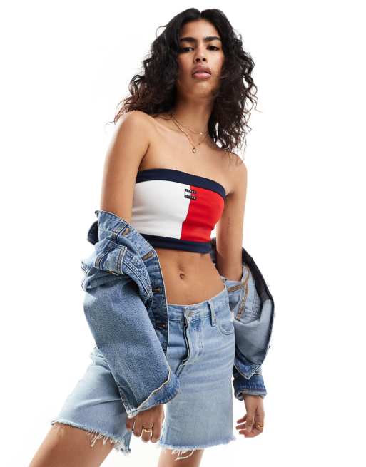 Tommy Jeans - Top bandeau à logo drapeau - Bleu/rouge/blanc