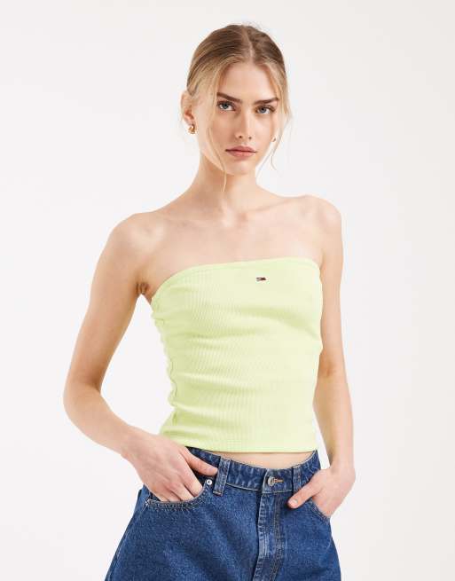 Tommy Jeans - Top bandeau côtelé ajusté - Citron vert