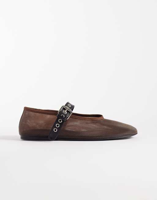 Tony Bianco - Mimzy - Ballerines plates en tulle avec bride à boucle - Marron