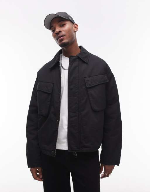 Topman - Blouson Harrington avec deux poches sur le devant - Noir