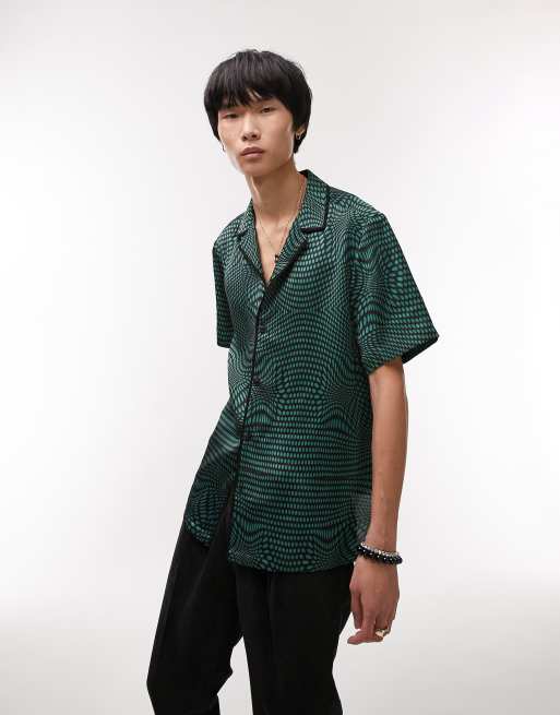 Topman - Chemise à revers en satin avec liseré et imprimé à pois - Sarcelle