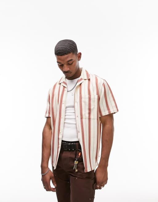 Topman - Chemise décontractée rayée à manches courtes et col à revers - Crème et orange