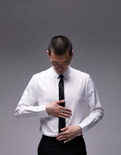 Topman - Chemise habillée ajustée à carreaux et manches longues - Blanc