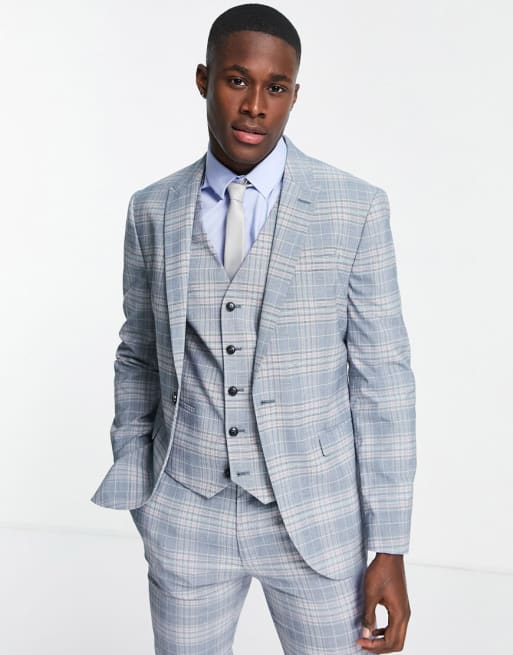 Topman - Costume ajusté à carreaux - Bleu