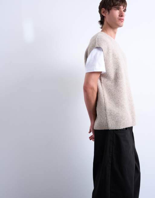 Topman - Débardeur ras de cou oversize en maille - Fauve