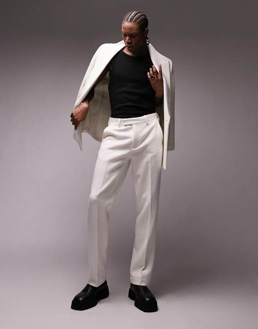 Topman - Édition Limitée - Pantalon de costume droit unisexe en laine mélangée duveteuse de qualité supérieure - Blanc
