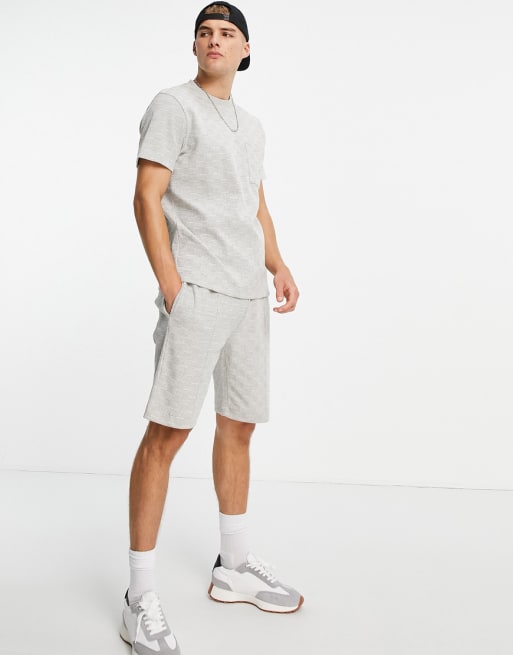 Topman - Ensemble avec t-shirt à carreaux et short - Crème