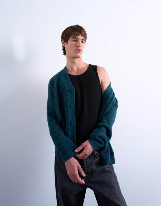 Ce gilet est confectionné dans une maille douce de teinte vert foncé. Il présente un col V, une patte de boutonnage et des manches longues. Sa coupe oversize le rend parfait à associer avec une tenue décontractée.Code produit: 147898359