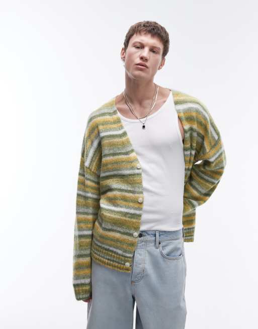 Topman - Gilet oversize à rayures - Vert et jaune