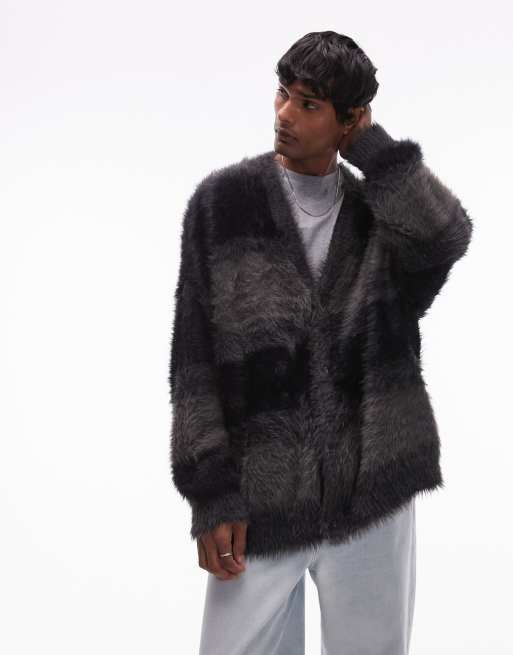 Topman - Gilet oversize en maille duveteuse à rayures - Noir
