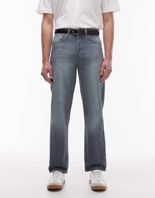 Topman - Jean droit rigide - Bleu moyen délavé