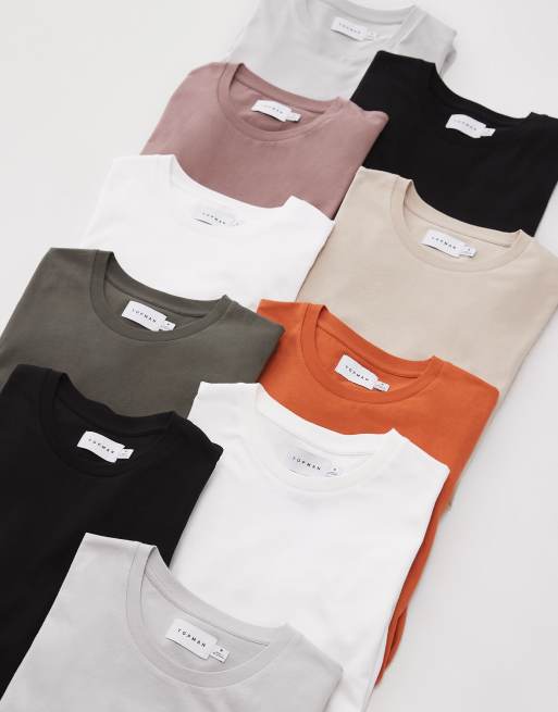 Topman - Lot de 10 t-shirts classiques - Noir/blanc/gris clair/taupe/rouille/vison/kaki