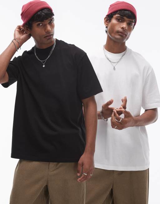 Topman - Lot de 2 t-shirts décontractés - Noir et blanc