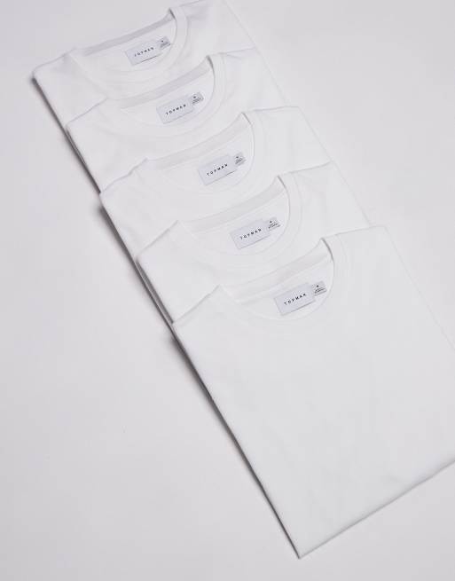 Topman - Lot de 5 t-shirts classiques - Blanc