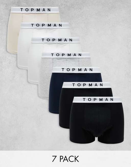 Topman - Lot de 7 boxers à taille blanche - Noir, blanc, gris chiné, bleu marine et taupe