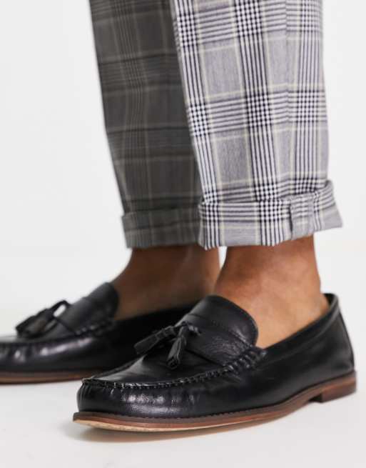 Topman - Mobsley - Mocassins en cuir véritable à houppes - Noir
