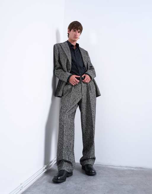 Topman - Pantalon ample en laine mélangée à chevrons - Noir
