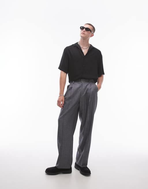Topman - Pantalon de costume ample effet hachuré - Gris