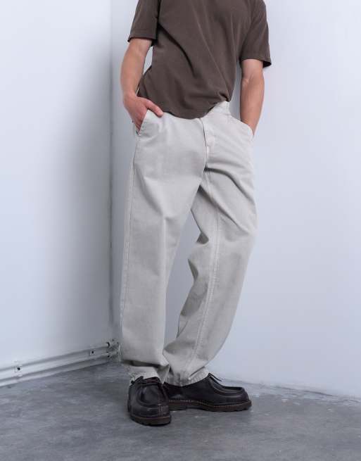 Topman - Pantalon droit en sergé avec taille élastique - Taupe