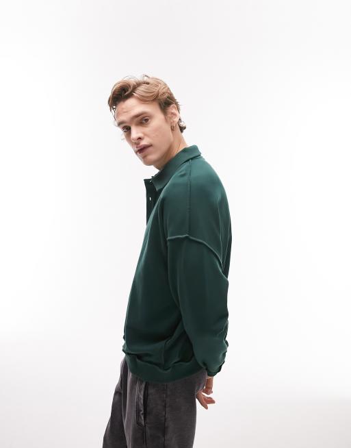Topman - Polo oversize avec coutures apparentes - Vert délavé
