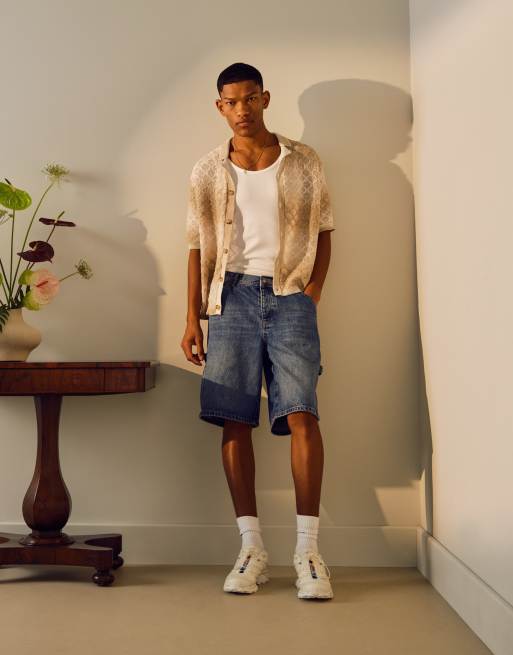 Topman - Short en jean style charpentier - Bleu moyen délavé