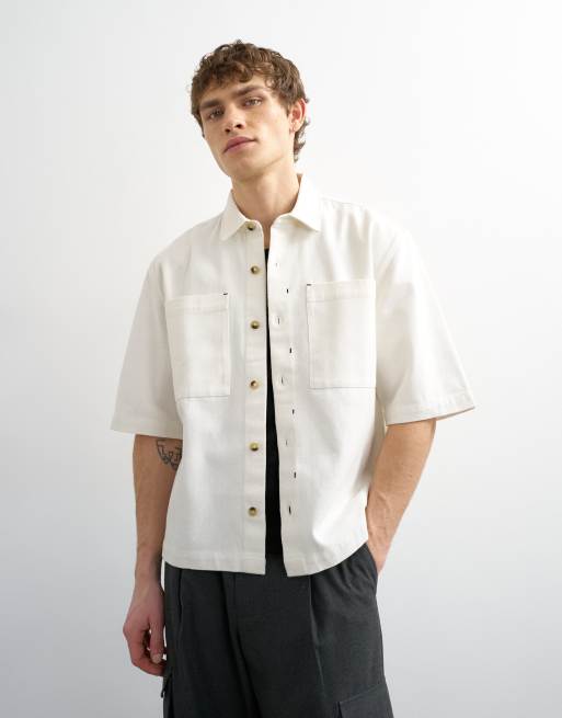 Topman - Surchemise courte décontractée en sergé à manches courtes - Écru contrastant