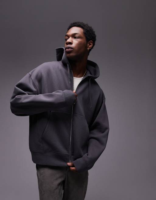 Topman - Sweat à capuche oversize à fermeture éclair - Anthracite