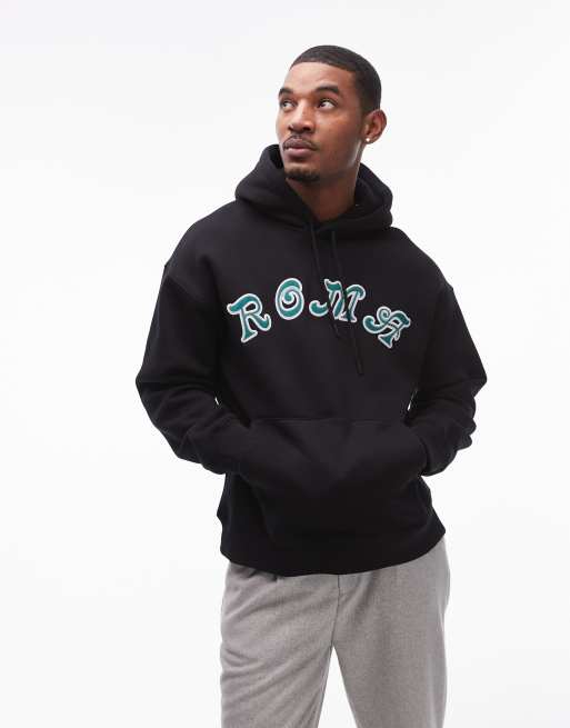 Topman - Sweat à capuche oversize avec appliqué Roma brodé - Noir