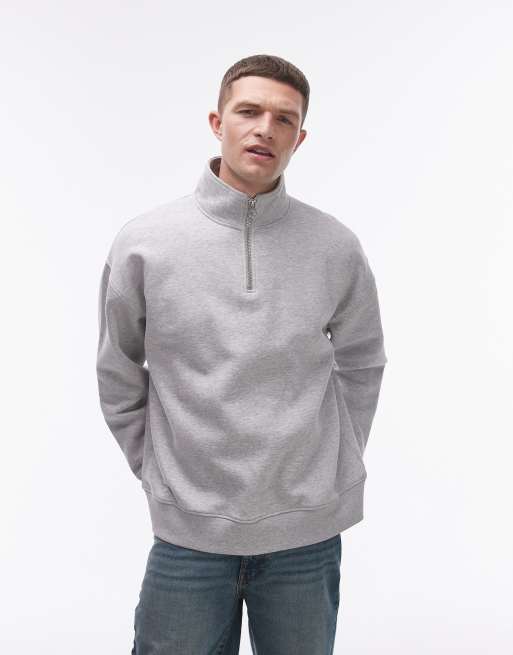 Topman - Sweat oversize épais à col zippé de qualité supérieure - Gris chiné