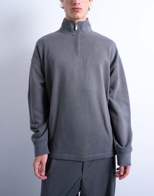 Topman - Sweat oversize et épais à col zippé - Anthracite