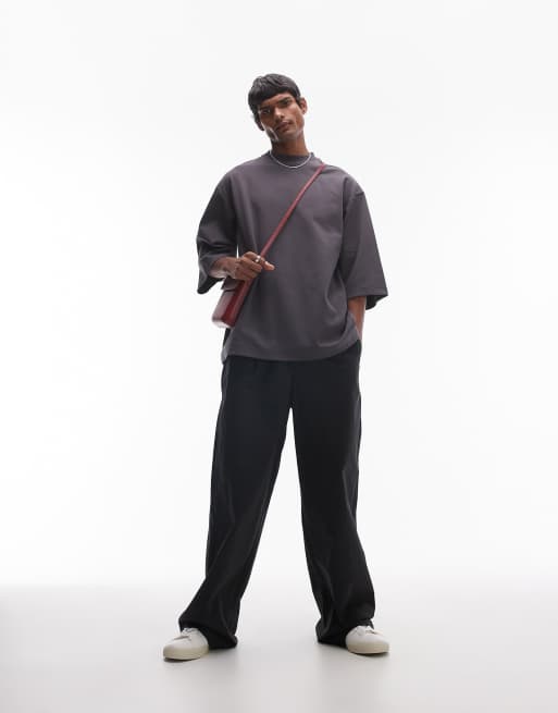 Topman - T-shirt décontracté épais de qualité supérieure à manches mi-longues - Anthracite