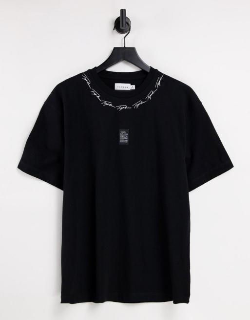 Topman - T-shirt oversize à encolure imprimée et écusson - Noir