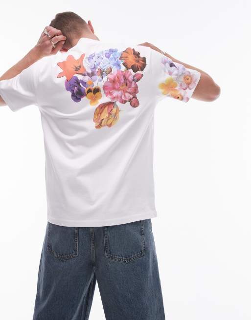 Topman - T-shirt oversize avec imprimé fleurs à l'avant et au dos - Blanc