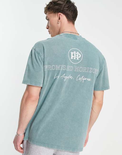 Topman - T-shirt oversize avec imprimé sur le devant et inscription Promised Horizons au dos - Vert