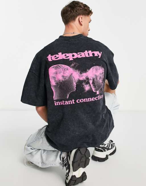 Topman - T-shirt ultra oversize avec imprimé telepathy sur le devant et au dos - Noir