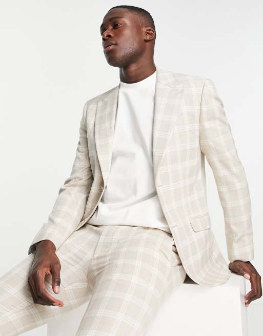 Topman - Veste de costume ultra ajustée à boutonnage simple et motif carreaux - Taupe