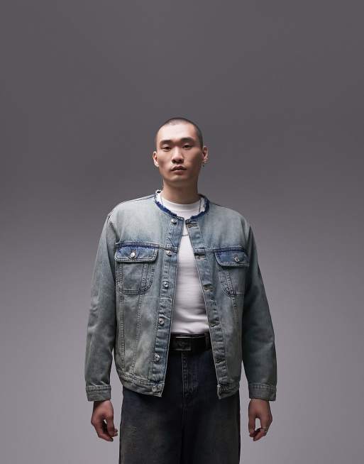 Topman - Veste en jean oversize sans col - Bleu teinté