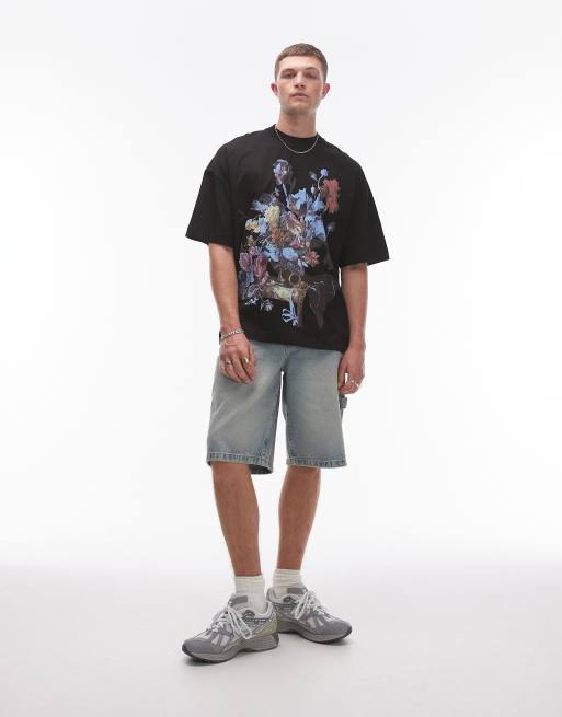 TOPMAN X ASHMOLEAN - T-shirt ultra oversize avec imprimé fleurs - Noir